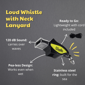 The Windie Loud Whistle is built for clear, powerful signaling in any conditions. Made from durable, non-corrosive, water-resistant plastic, it’s lightweight, easy to blow, and designed to be heard over wind and waves.