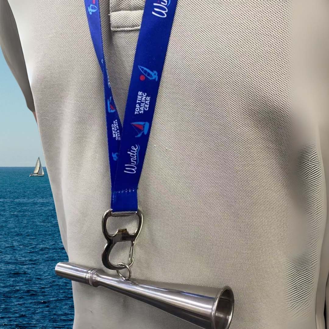 Premium handheld fog horn made of stainless steel, approximately 17 cm long. Designed for marine use in conditions requiring loud and clear sound signals - especially in fog, limited visibility, or during course changes in regattas.